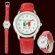 O relógio de pulso com números verdes apresenta a bandeira verde, branca e vermelha italiana ou Il Tricolore. Abaixo está a palavra ITÁLIA, também no tricolor italiano. Acima é um lugar para o seu nome, em letras verdes, para adicionar uma aparência personalizada. Ou criar um presente personalizado adicionando o nome de outra pessoa. Perfeito para vestir a uma reunião de família, a um grupo de viagens ou a um clube.