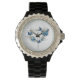 Coração de ouro com borboletas realísticas azuis e brancas. Morpho. Design com borboletas azuis morfo.
