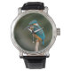 Kingfisher num galho sobre um rio. Fotografia sobre presentes e acessórios disponíveis para personalização.