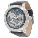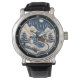 This artistic watch face showcases a charming layered winter scene. A cheerful snowman stands prominently by a winding river, amidst snow-draped houses and stylized pine trees. The unique carved effect creates depth, all under a radiant sun or moon. This decorative timepiece beautifully captures the tranquil essence of a snowy village, perfect for adding seasonal charm.