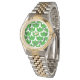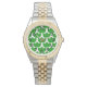 Este relógio feminino tem um design escandinavo de trios de folhas repetindo através da design em três tons de verde.