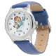 Este relógio de criança personalizado, divertido e enérgico apresenta um leão alegre jogando futebol. O leão pratica uma camisa de futebol divertida e shorts em vermelhos e verdes vibrantes.