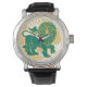 Leão do zodiac em verde e branco em um relógio de pulso.