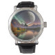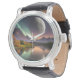Lua pendurada sobre a paisagem montanhosa com Aurora Borealis refletida na água Autumn tree AI Art criada por minx267