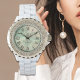 Relógio Luxo Aqua Mármore Pulseira de Couro Preta Masculin