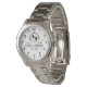 Create your own custom brand luxury watch. Timeless elegant watch dial design with fine indexes. Add your own custom monogram, custom name, designer name, initials, year of birth, logo, icon, photo image, etc. Sophisticated presence of modern minimalist style with elegant script typography template. Luxurious watch for him. Make it a cool new gift for boyfriend, boyfriend, dad, father, husband, brother, son, boyfriend, grandpa, grandpa, grandfather, stepdad, uncle, coworker, employee, company boss, business partner, colleague, best friend, teacher, coach or retiree. Unique monogrammed gift ideas for men's birthday, graduation, anniversary, retirement, vacation, wedding party, appreciation, employment, work, etc. Large diameter about 44mm. Classic vintage style with 22mm fashion black leather wrist strap. White or custom background color. Perfect for 20th, 30th, 40th, 50th, 60th, 70th, 80th, 90s celebrations. Affordable quartz watches under $100. Nice for casual daily wear and special occasions. Also available for other models with brown leather or steel bracelet.