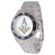 Um relógio Masônico com um Quadrado e Compass.
