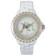 Um relógio elegante para a mãe! Belas Rosas e pequenas flores coloridas entrelaçam-se em vinhas verdes que difundem a palavra "Mãe". Para aniversário ou Dia de as mães é a design perfeita para honrar aquela pessoa mais especial em sua vida.