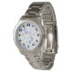 Um relógio feminino com um padrão de unicórnios aquarelas, nuvens fofinhas, estrelas e corações. Design místico e místico.