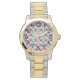 Este relógio feminino tem um design de Bauhaus repetindo triângulos em ouro, turquesa, chalé, roxo e ouro leve. Se você gosta do design, mas prefere cores diferentes, me mande mensagem.
