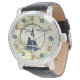 Relógio Mapa antigo/vela/âncora/silhueta de roda náutica