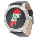 A bandeira libanesa se sobrepôs à forma do Mapa do Líbano, e com Beirute Capital escrita em árabe. Ilustração vetorial isolada em branco. Copyright BluedarkArt The ChameleonArt.