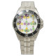 Este relógio masculino tem um design de Flur de lis, Mardi Gras, alinhado na design com diferentes designs.