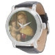 Belas artes pelo pintor italiano Tisi. Virgem Maria guarda Cristo em seu colo com janela aberta e cena italiana ao fundo.