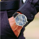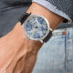 Relógio masculino Blue Marble com Numerais Árabes – Peça com Cinto de Couro Personalizado – Presente para Noivo, Aniversário, Feriados ou Eid.