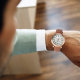 Relógio masculino de couro marrom e dourado-rosado