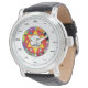 Mayan Numbers decoram o relógio de pulso deste homem, junto com um design maia colorido. Divertido para o viajante do mundo real e faz um presente excelente para o amante da sociedade maia que você conhece. A Vintage Black Leather Strap Watch apresenta um movimento de quartzo em três mãos e uma pulseira de couro genuína, o aspecto clássico deste relógio é excelente para ocasiões formais e divertidas. Personalize o rosto com seu nome e faça com que este relógio corresponda perfeitamente à sua personalidade e estilo. Face feita de liga, correia: couro e face de medida: diâmetro de 1,45", precinta: 9,25" x 0,86", caso: diâmetro de 1,75". Peso: 0,115 lb, Japão Quartz analógico de 3 mãos, Intel® Water Resistance: Até 3 ATM (98,4 pés) com garantia limitada de um ano do fabricante. Bateria incluída e este produto é recomendado para mais de 13 anos.