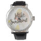 Um design de tipografia fofo em tons laranja e amarelo de aquarela. Artista: Laura Marshall