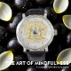 Um Buda radiante, ouro, está sentado em uma pose meditativa serena, cercado por intrincadas árvores com galhos folhosos. A cena transmite tranquilidade e esclarecimento, convidando reflexão espiritual e serenidade.