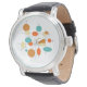 Este relógio de meio século, cor de laranja, creme, e círculos geométricos retrorreflectores pretos e de linhas não só acrescentará um pop de cor ao seu braço, como será também uma peça de arte original.