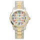 Este relógio feminino tem uma design de metade oval moderna do século médio, algumas sólidas e algumas listradas, num campo de branco.