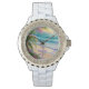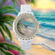 Relógio Meu Feliz Lugar Praia Rhinestone em Branco