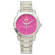 Celebrate love with this minimalist custom monogram watch, featuring a soft pink background and elegant yellow Roman numerals. This personalized timepiece is designed for couples who appreciate modern simplicity and timeless elegance. Customizable with your names or initials, it makes an ideal gift for weddings, anniversaries, engagements, or special occasions. The sleek and stylish design ensures versatility, making it a perfect everyday accessory or a sentimental keepsake.
