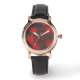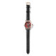 Stylish red and grey monogrammed watch with elegant maple leaf art.