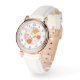 Modern Orange Floral Trendy Na moda Chic Womans Watches apresenta uma moderna tendência de cor-de-água laranja, rosa, branca e verde. Criado pelo Evco Studio www.zazzle.com/store/evcostudio