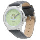 Um relógio verde com números, uma ilustração de um sapo fofo no seu lago e texto personalizável abaixo! Um belo presente para um garoto de aniversário, os números vão permitir que ele aprenda os tempos mais facilmente!