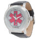 Vista esta Vigilância Médica para avisar as horas... e para alertar os serviços de emergência, ambulância, polícia ou esquadrão de resgate às suas condições, alergias, medicamentos, etc. Personalize a Monitorização de Alertas Médicos com as suas cores favoritas e informações relativas à sua condição.