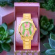 Relógio Monograma Dourado de Argyle Rosa e Verde