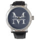 Relógio Monograma e Nome Azul do Marinho Elegante Personal