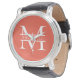 Relógio Monograma e Nome Elegante Laranja Personalizado