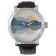 Abstrato de ilustração colorida do nascer do sol com montanhas azuis refletidas no lago