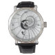 Montre homme avec un design psychédélique et mystique. La Roue du Temps qui tourne, et tourne implacablement dans unes sorte de "Memento Mori". Nous, voyageurs du temps, nous balançons en permanence entre le jour et la nuit.