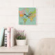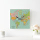 Relógio quadrado com o mapa mundial como fundo. Perfeito para qualquer quarto!