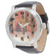 Um relógio com uma expressiva pintura artística de três músicos boêmicos que tocam música em seus instrumentos, que incluem um mandolim, uma flauta e um violão. Tonalidades ricas de amarelo, laranja e marrom criam uma qualidade mágica de verão quente em um estilo de pintura impressionista mostrando esses reles encantadores.