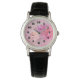 Um relógio com uma fotografia com um buquê de cravos cor-de-rosa. Preparado num fundo etéreo sonhador.