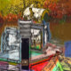 Um design de arte de uma chaminé de barco estreito e uma lâmpada decorada antiga.Barcos do Canal, conhecidos no Reino Unido como barcos estreitos, foram originalmente usados para transportar mercadorias pelo país. Atualmente, são utilizadas principalmente para o lazer e atraem pessoas de todo o mundo para usufruir do nosso campo rural. Estes barcos parecem muito bonito com as suas cabanas de cor brilhante, tradicionalmente azuis, vermelhas ou verdes. Flores e designs de castelos também adoram os barcos mais tradicionais.