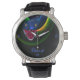 Legal relógio, com cobra de néon abstrato, com cabeça azul e olhos amarelos, contra fundo preto. Personalize o texto azul para atender às suas necessidades. Ideia personalizada de presente de excelente.