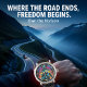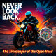 This watch face features a dynamic graphic of a motorcyclist in a helmet, riding a bike against a vibrant backdrop of neon blue, pink, and orange wings or flares. The design has a futuristic, almost comic-book style. White numbers and watch hands are clearly visible, creating a bold and energetic accessory for motorcycle enthusiasts.