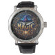 Este relógio redondo apresenta um design cativante com um chapéu de bruxa roxa vibrante no seu centro, brilhando com luz mágica. padrões giratórios de ouro ornamentado e estrelas cintilantes armam as palavras "NESTA ASSEMBLEIA NÓS ACREDITAMOS EM MÁGICA", juntamente com uma varinha mágica brilhante. Este relógio encantador é perfeito para amantes da fantasia.