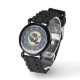 Um gato preto engraçado ninja num relógio. Use "Personalizar este modelo" para ajustar o texto "TEMPO DE AÇÃO DE TI!" e criar um presente exclusivo e personalizado. Hora de suas missões secretas com este relógio, apresentando um legal gato negro, silenciado pela lua de cheio, fazendo um chute voso. O felino voador está preso em uma engrenagem ninja com cinto e espadas.
