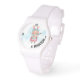 A ilustração aquosa da Miss Coelhinho da Páscoa aparece neste relógio com uma fivela branca de silicone que nunca sairá do estilo. Personalize facilmente usando o Modelo fornecido. Escolha entre 15 estilos, quatro deles são sobredimensionados. A impressão nesses relógios é excelente.