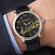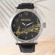 Simples e elegante para um amante ou músico! Fundo preto com notas falsas de ouro. Modelo para o seu nome, cartas de ouro. Números de relógio do ouro.