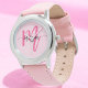 Acessorize com elegância usando nosso Hot Pink Modern Script Girls Monograma Name Watch! Este na moda apresenta uma face rosa-quente vibrante, personalizada com seu nome em um script moderno para uma aparência exclusiva e personalizada. Perfeito para adicionar um pop de cor a qualquer equipamento, ele combina moda com funcionalidade. O relógio oferece um ajustado confortável com uma precinta ajustável e uma cronometria precisa. Elevem seu estilo cotidiano com esta tendência, um relógio personalizado que está na moda e na prática.