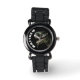 Este design de relógio dinâmico apresenta um T-Rex feroz rugindo contra um fundo preto elegante, perfeito para crianças adoráveis de dinossauros de todas as idades. A imagem de dinossauro em negrito é complementada por um nome personalizável, exibido em letras nítidas e brancas, adicionando um toque divertido e personalizado à face de relógio. Ideal para quem desfruta de temas pré-históricos, este relógio combina design lúdico com praticidade, fazer-o acessório de destaque para o veste diário. O detalhado trabalho de arte T-Rex adiciona uma vibração aventureira, perfeita para mostrar seu amor pelos dinossauros de uma forma única e na moda.