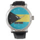 Celebre o seu orgulho de ser do belo país insular das Bahamas. Este design apresenta uma bandeira clássica Bahamiana com um conjunto de algarismos romanos que são amovíveis à volta da face do relógio. Na parte inferior do seu relógio está um nome com seu nome ou nome de seus destinatários de presentes em uma fonte elegante Um souvenir de excelente para qualquer residente ou expiado orgulhoso da Bahamas.