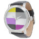 Show off your personality with this nonbinary flag and asexual flag combined in a watch to show off your gender pronouns and sexuality. A cool non binary gift for a person that goes by they/them.